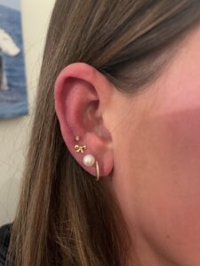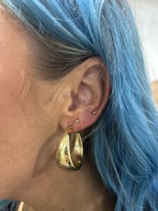- One ear piercing. Either a re-piercing or just a little added bling to one ear.